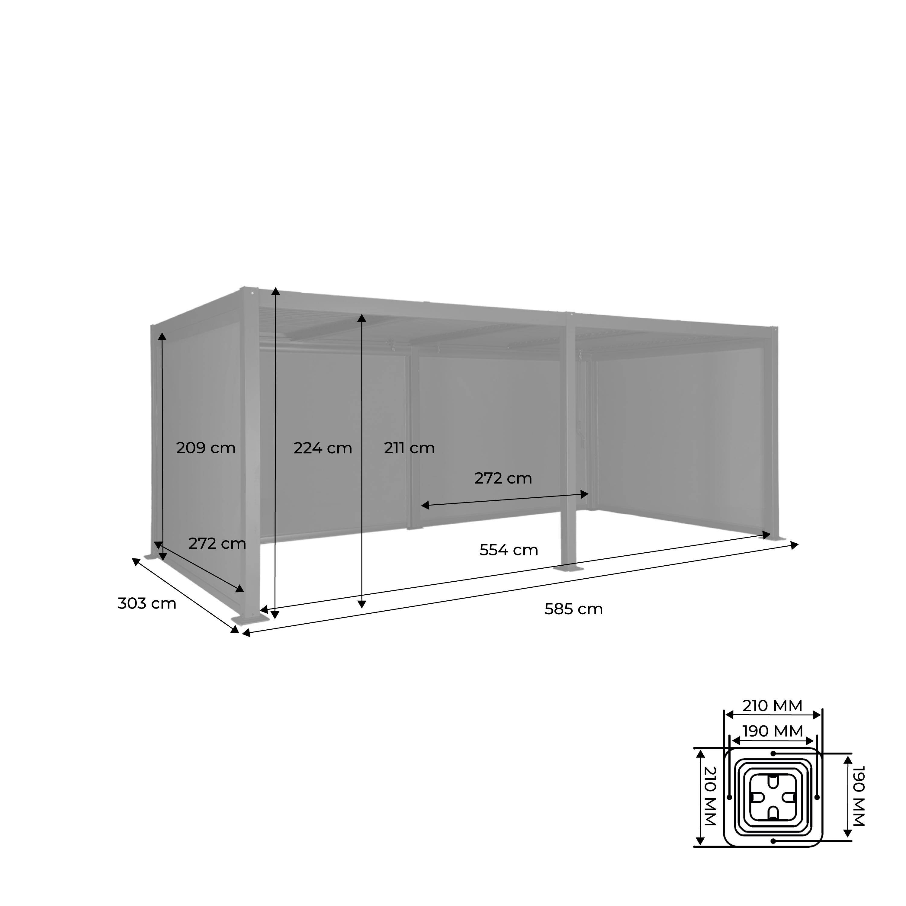 Geniet van aangename en gezellige momenten in de tuin met de pergola Palace 3 x 6 meter. Deze pergola heeft als bijzonderheid dat hij zich aanpast aan het weer. Hij beschermt tegen de regen in de winter en laat je genieten van de zon in de zomer, terwijl je zijn schaduw en frisheid waardeert. De pergola is een permanente installatie omdat hij in de grond moet worden bevestigd. Je hoeft hem in de winter dan ook niet op te bergen, je kunt er het hele jaar door van genieten.